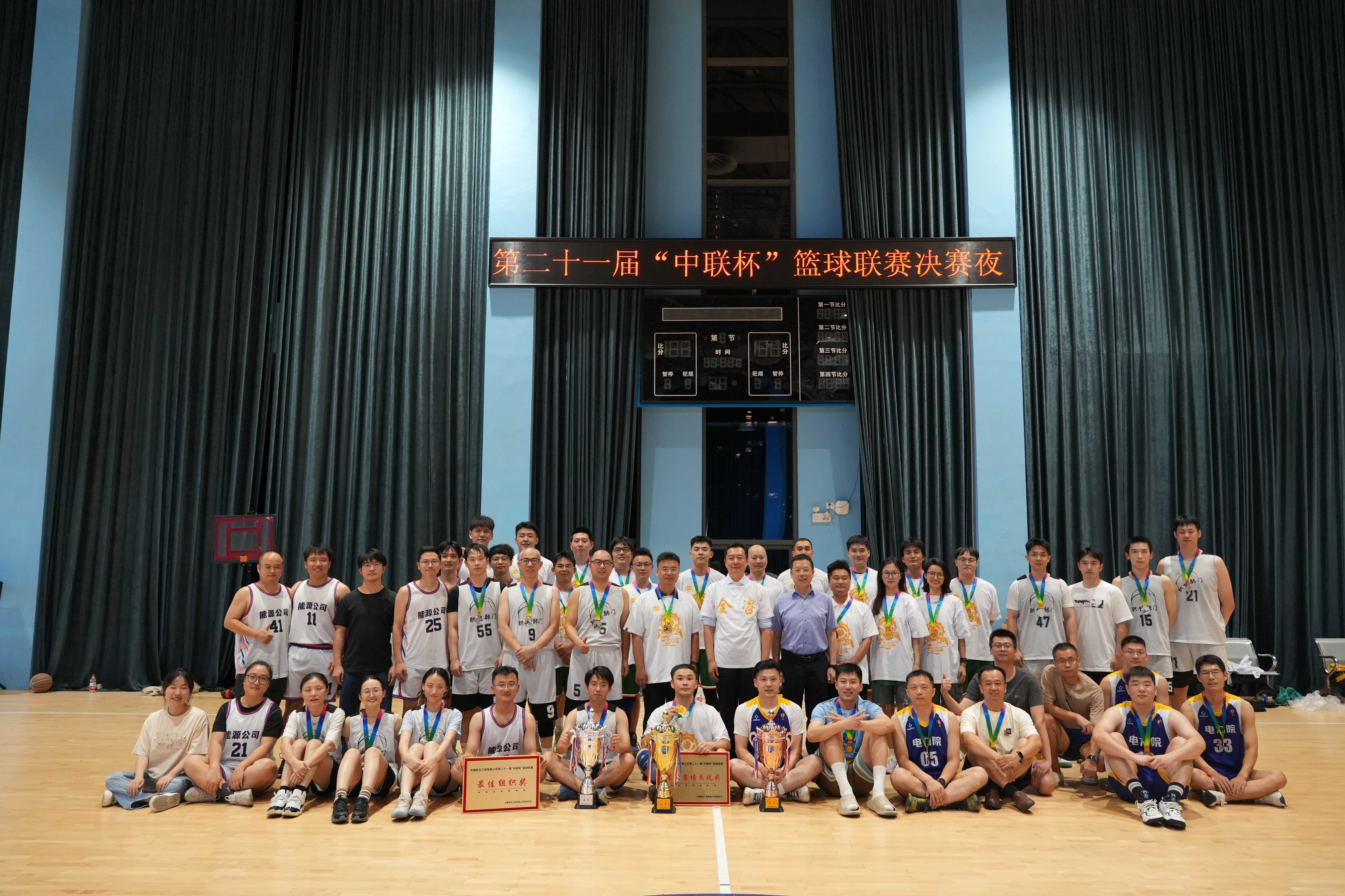 第二十一届“中联杯”篮球联赛自7月初拉开帷幕以来,各个事业部组成的12支队伍经过近2个月的激烈角逐,最终职能部门与全咨中心两支实力强劲的队伍脱颖而出,于8月底迎来“中联杯”篮球联赛决赛夜的终极之战。在万众瞩目中,全咨中心队与职能部门队展开巅峰对决。经过四节激烈鏖战,全咨中心最终以53比47战胜对手,首次捧起冠军奖杯,书写下属于自己的传奇篇章。