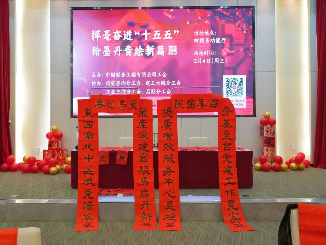 笔墨传情辞旧岁,春联送福启新篇。为营造喜庆祥和的马年新春氛围,凝聚全体员工奋进“十五五”的精神力量,扎实践行公司“家园”文化,2月4日立春之际,中国联合工程有限公司在杭州、重庆、西安三地同步开展“挥毫奋进‘十五五’·翰墨丹青绘新篇”主题迎新春写春联活动。活动以笔墨寄心愿,以春联贺新春,共绘公司发展新蓝图。