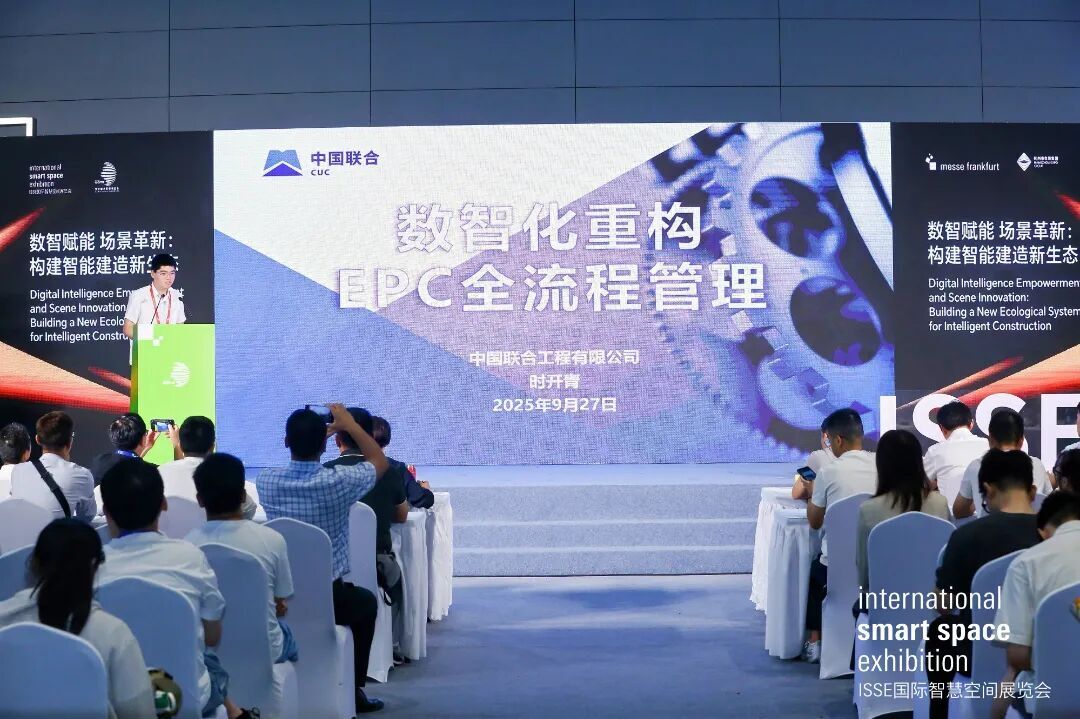 本次展会还设置了“数智赋能・场景革新:构建智能建造新生态”主题论坛。中国联合受邀作题为《数智化重构EPC全流程管理》的分享。中国联合专家结合公司多年的数智化实践探索,从“科学管理提升、数据集中治理、数据驱动决策”三个维度,详细介绍公司在EPC项目全流程管理中数智化技术的应用路径与成效。